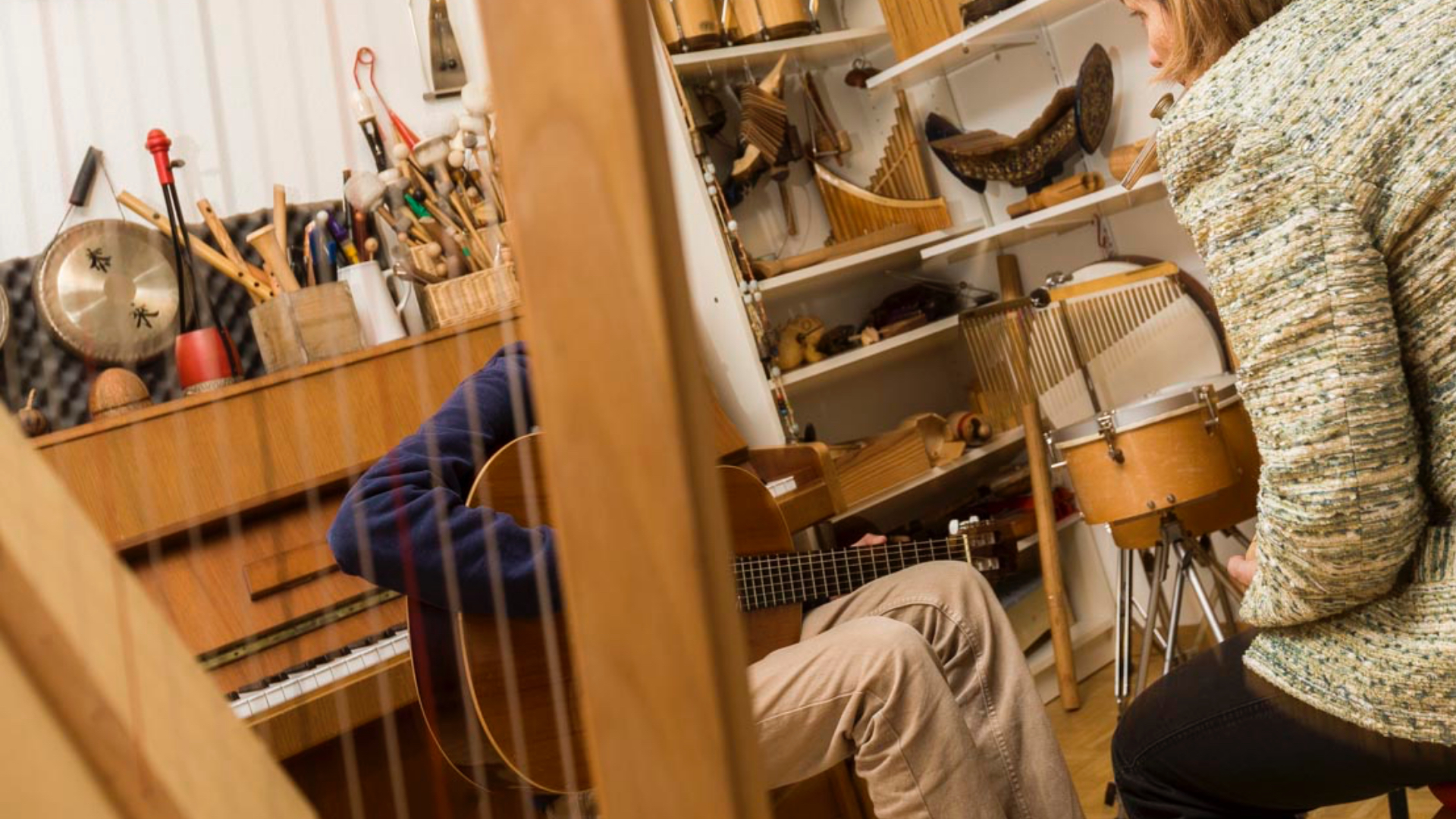 Dans cet atelier, nous découvrons des sons et des rythmes de notre crû. De nombreux instruments sont à disposition; ils permettent de s’adonner à la musique créativement, sans pression aucune, pour le plaisir de jouer  et de chanter avant tout. L’improvisation avec des instruments à vent, à cordes ou de percussion, mais aussi avec des bruitages divers et leur propre voix permet aux participants d’inventer leur propre musique pour mettre en scène des histoires, des images, un rôle – ou leurs propres chants.